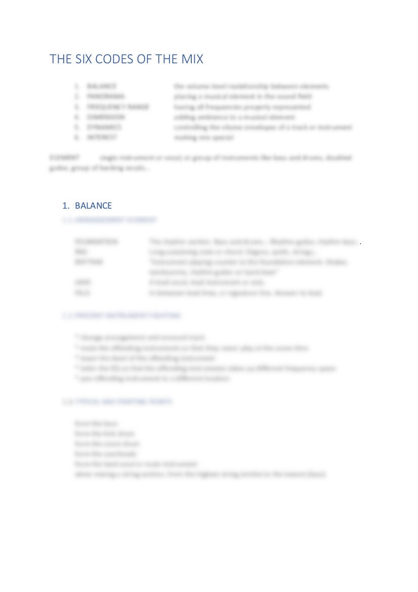 Discover the six essential codes that define every great mix â from balance, panorama, and frequency range to dimension, dynamics, and creative interest.